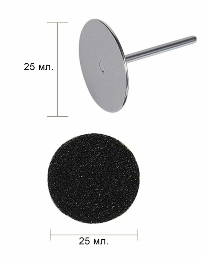 This pedicure disc (Ø 25 mm, size L) features a 2.1 mm shank diameter and 3 cm length. It effectively removes rough, calloused skin from the feet in minutes without keratolytics. Comes with replaceable foam-backed files: 80 grit for rough skin, 150 grit for medium skin, and 240 grit for final polishing to prevent cracks.